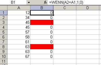 In Microsoft Ecxel doppelte Werte in Spalte A ohne Makro anzeigen: